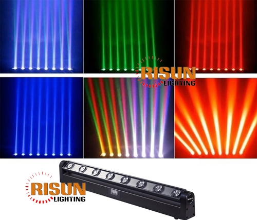 LED 8头光束灯光束效果好,旋转角度大,创造出惊人的由慢及快的流水效果。同时产品内置8种自走程序,操作简单可调用,效果出众。超快顺滑的270°垂直旋转,大大提高了产品的工作性能,应用更加广阔。这是一款简单的便携式系统,底部提供了两个快上锁位置,安装简易,适用于中小型演唱会,TV演播室,流动演出,移动DJ,酒吧夜场,KTV豪华包房,婚庆婚礼等舞台上。光源用了8颗10W的白色LED灯珠,具有出色的白色光束效果和超亮输出,创造出惊人的由慢及快的流水效果。
